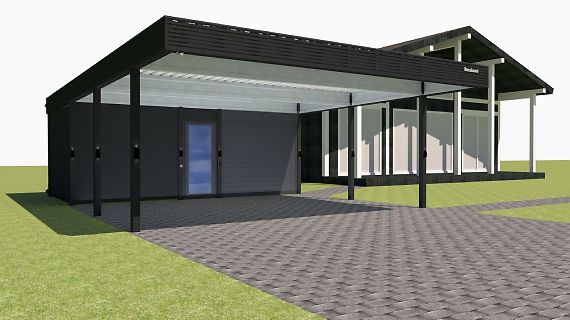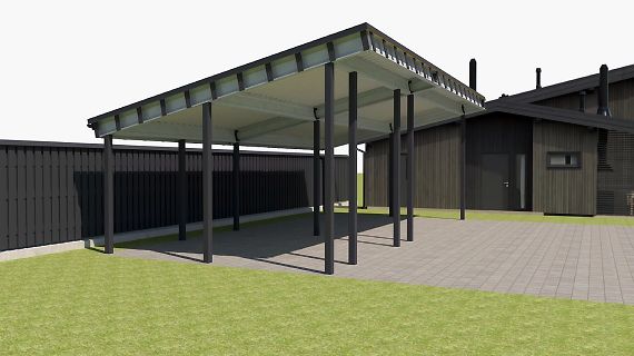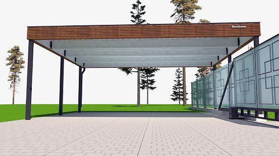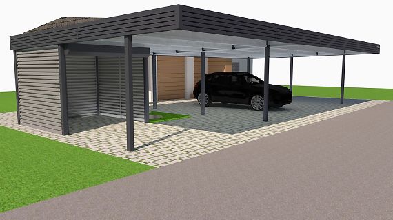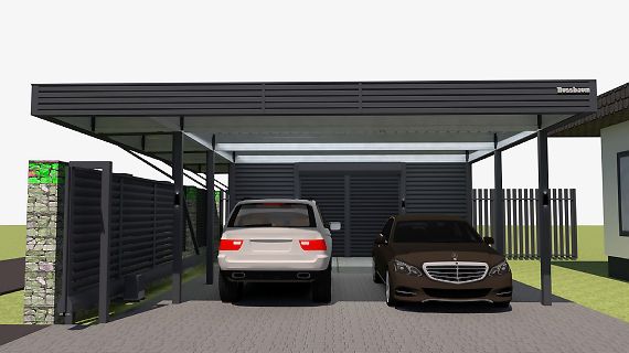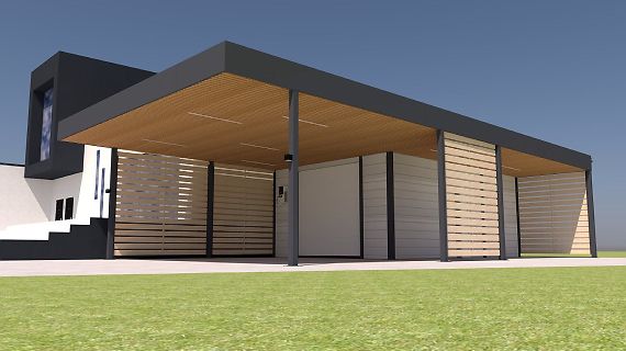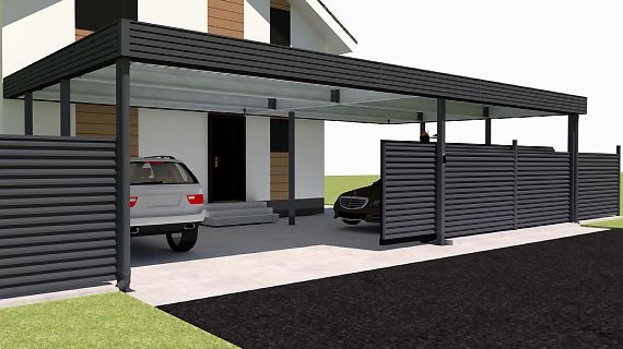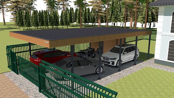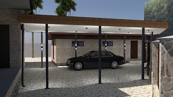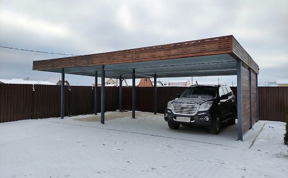 Современные автомобильные навесы с плоской кровлей отлично подходят для решения любых дизайнерских, архитектурных и функциональных задач. Нестандартная геометрия, хозяйственные постройки, въездная группа под крышей и многое, многое другое.