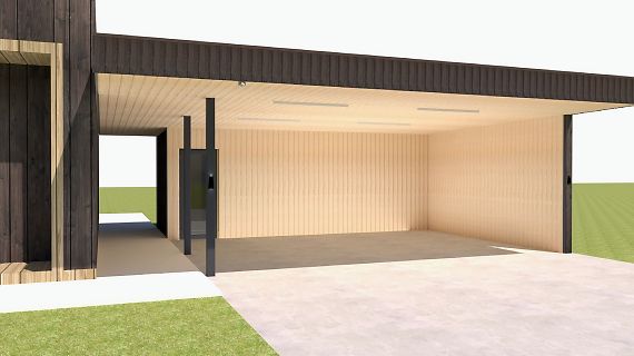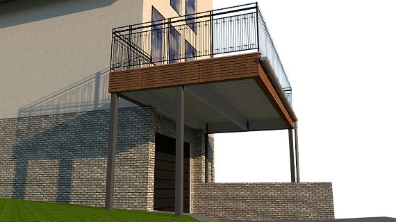 Самонесущий профлист, используемый нами для кровли, может использоваться как основа для настила пола второго этажа при организации веранды или балкона над парковочным местом.