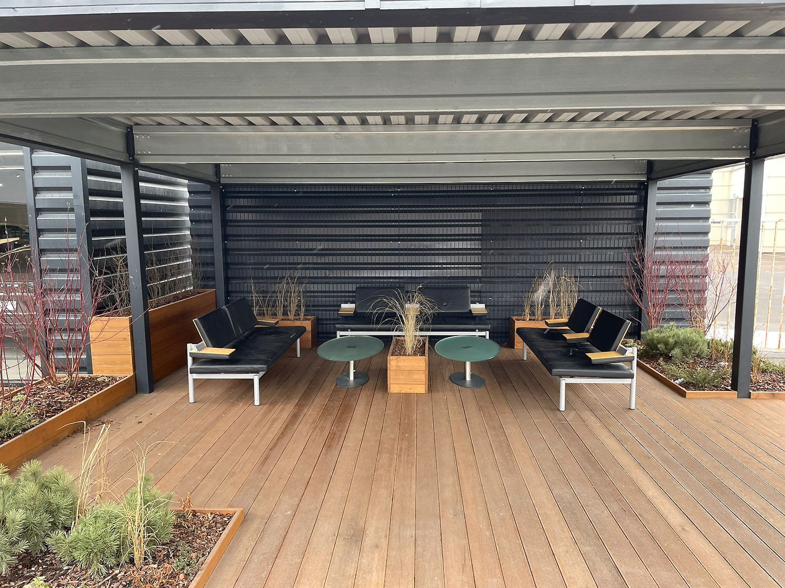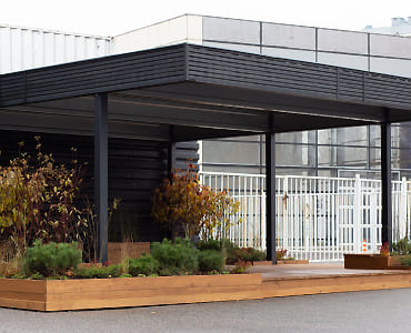 Один из наших первых навесов в Санкт-Петербурге. Типовой проект 6х6,5 оформленный под переговорную / зону отдыха возле автосалона. Можно посетить, посмотреть вживую. Позвоните, и мы организуем демонстрацию!